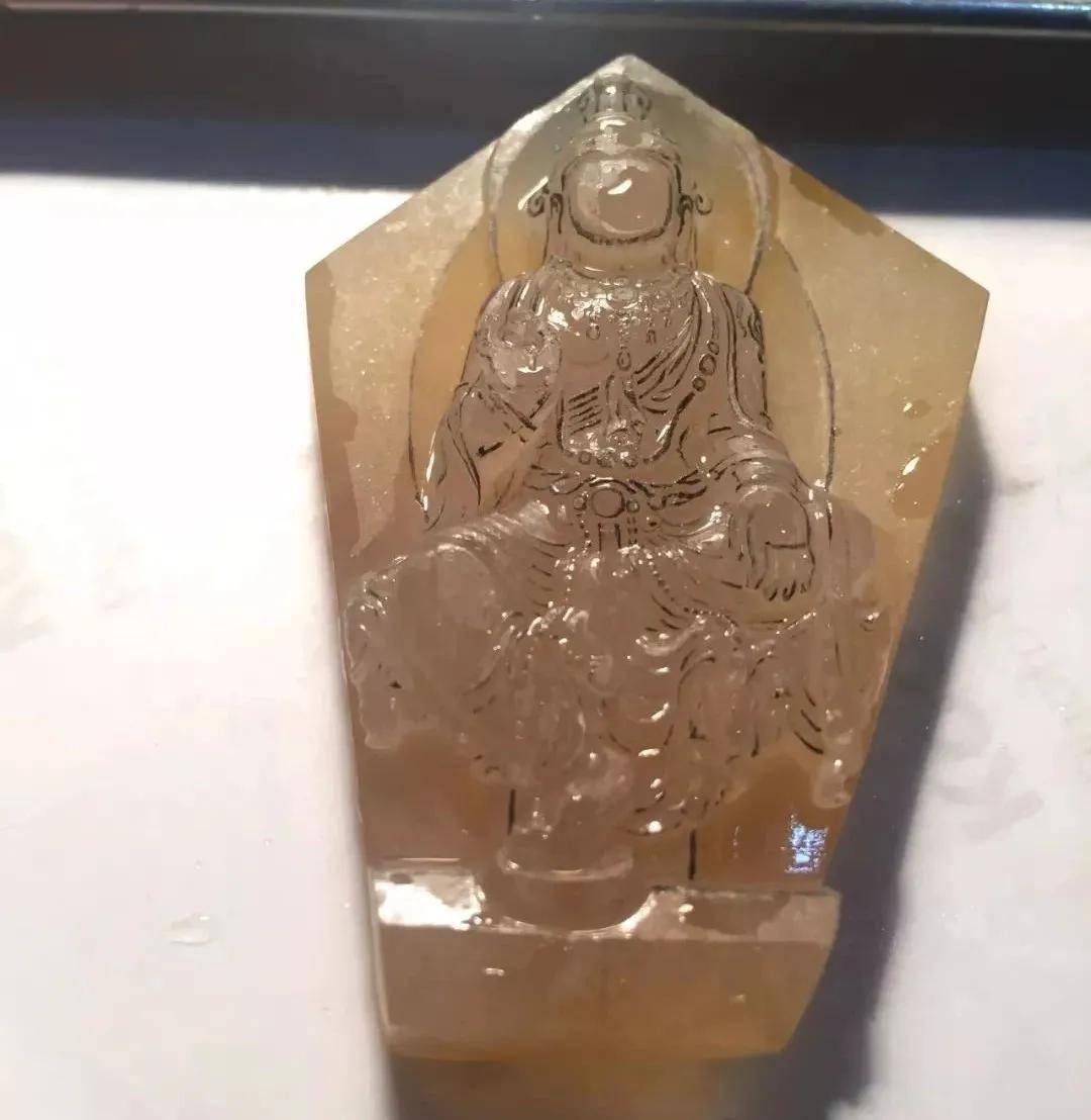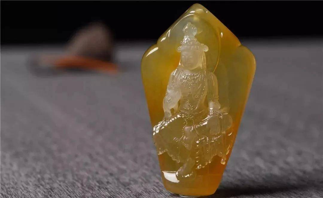 玉雕師用糯冰種黃翡創作的雕刻作品《自在觀音》,作品色澤鮮豔明麗,觀音面容慈祥而又不失莊重,作品從構思到成品的整體過程。 話不多說,上圖。