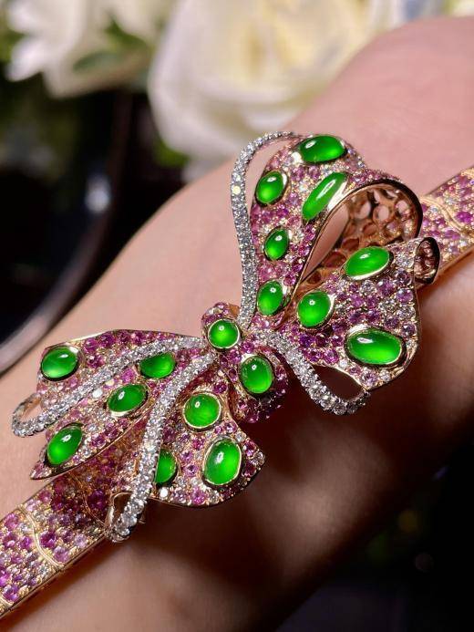 其次可以通過瑕疵來辨別。 因為酸洗的目的就是為了去掉翡翠中的雜質,所以它會給人一種完美的感覺,毫無瑕疵。 這一點可以用放大鏡仔細觀察。 天然的翡翠仔細觀察時會有些許的瑕疵,許多都是肉眼不可見的。 如果酸洗后再進行染色的話,那可以看到翡翠的顏色鮮艷異常,顏色不太真實的感覺。