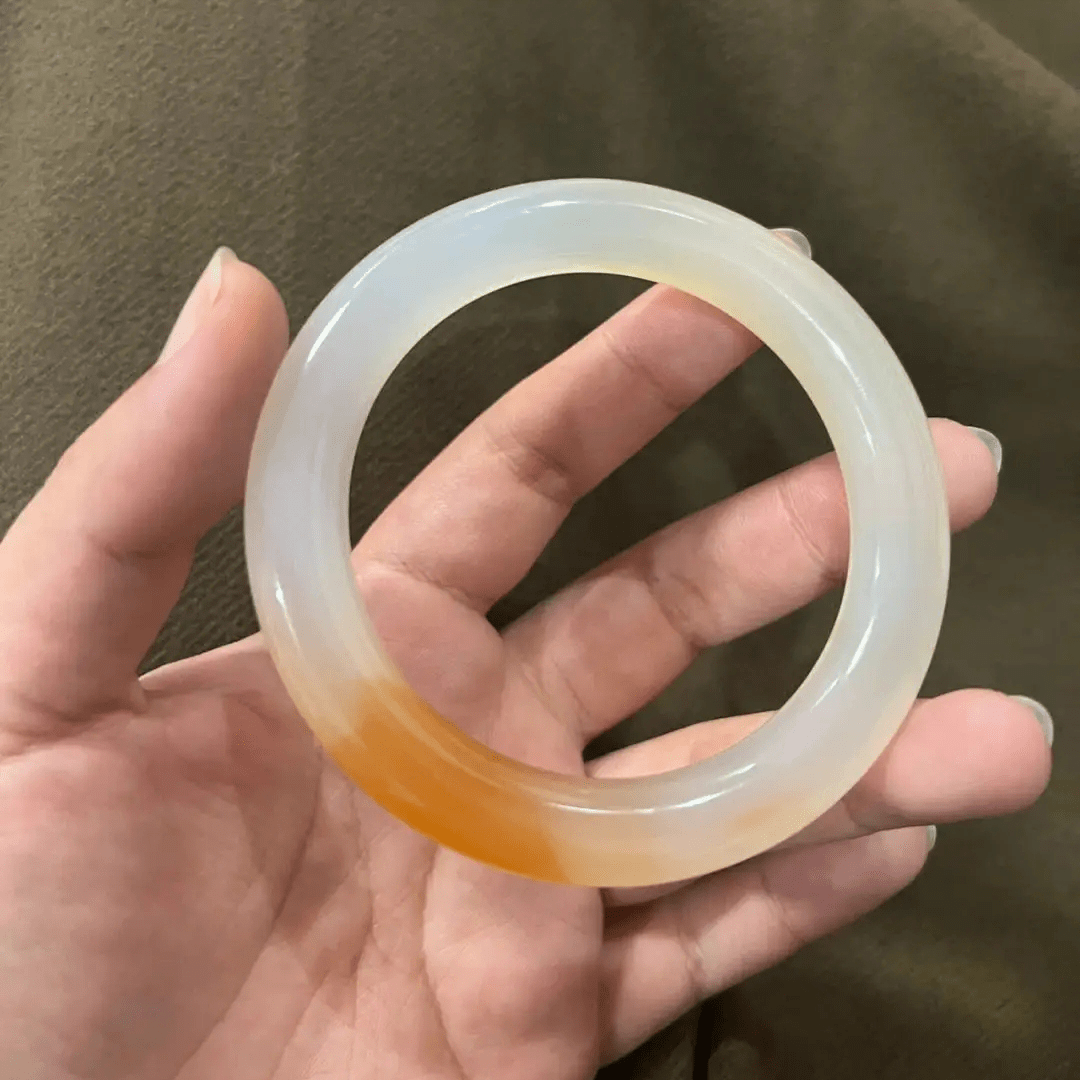這種染色的玉髓不算是作假,因為國標允許,但染色工藝也分好壞,好的能堅持幾年都不褪色,差的你買回去之後拿棉簽蘸點酒精就能擦掉,那這種染色的玉髓手鐲,應該賣多少錢呢?