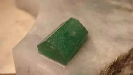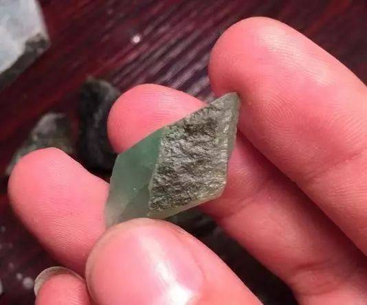 稍微打燈觀察就知道,這可是“會卡”起白霧的皮子,會卡場口經常出極品小料,很多重量級的,這塊比小指頭還小的料子,透過表皮都能隱約看到裡面剔透的肉。