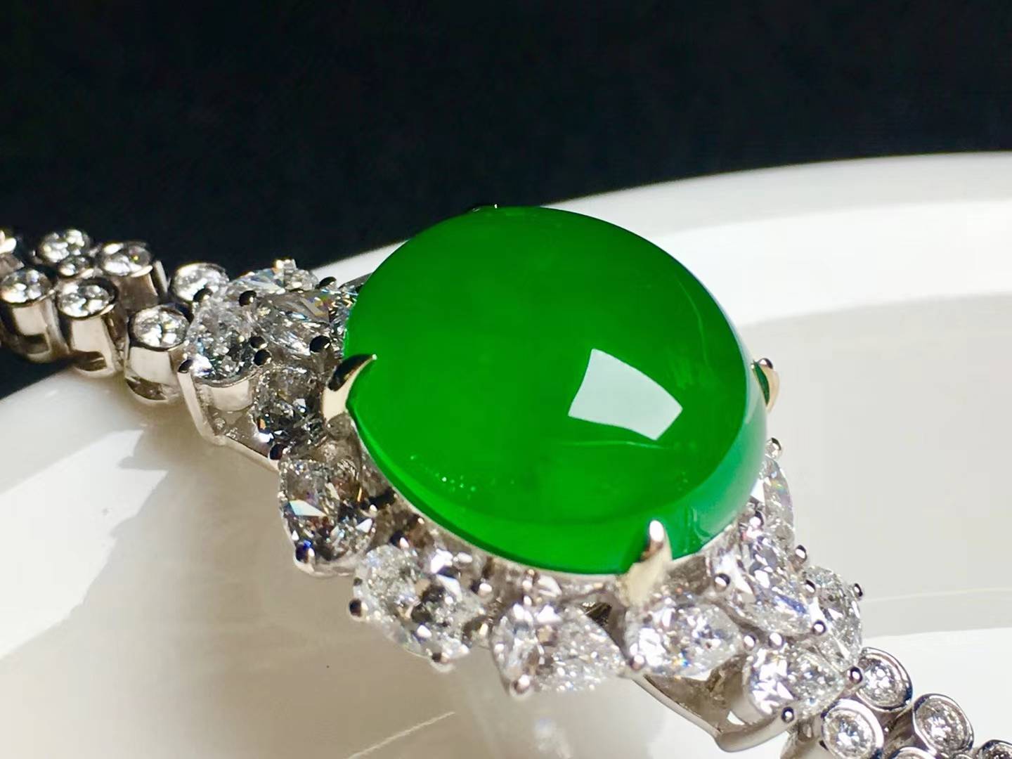 帝王綠色是翡翠中顏色最好、價值最高的綠色,也稱「祖母綠色」,給人以高貴之美感。