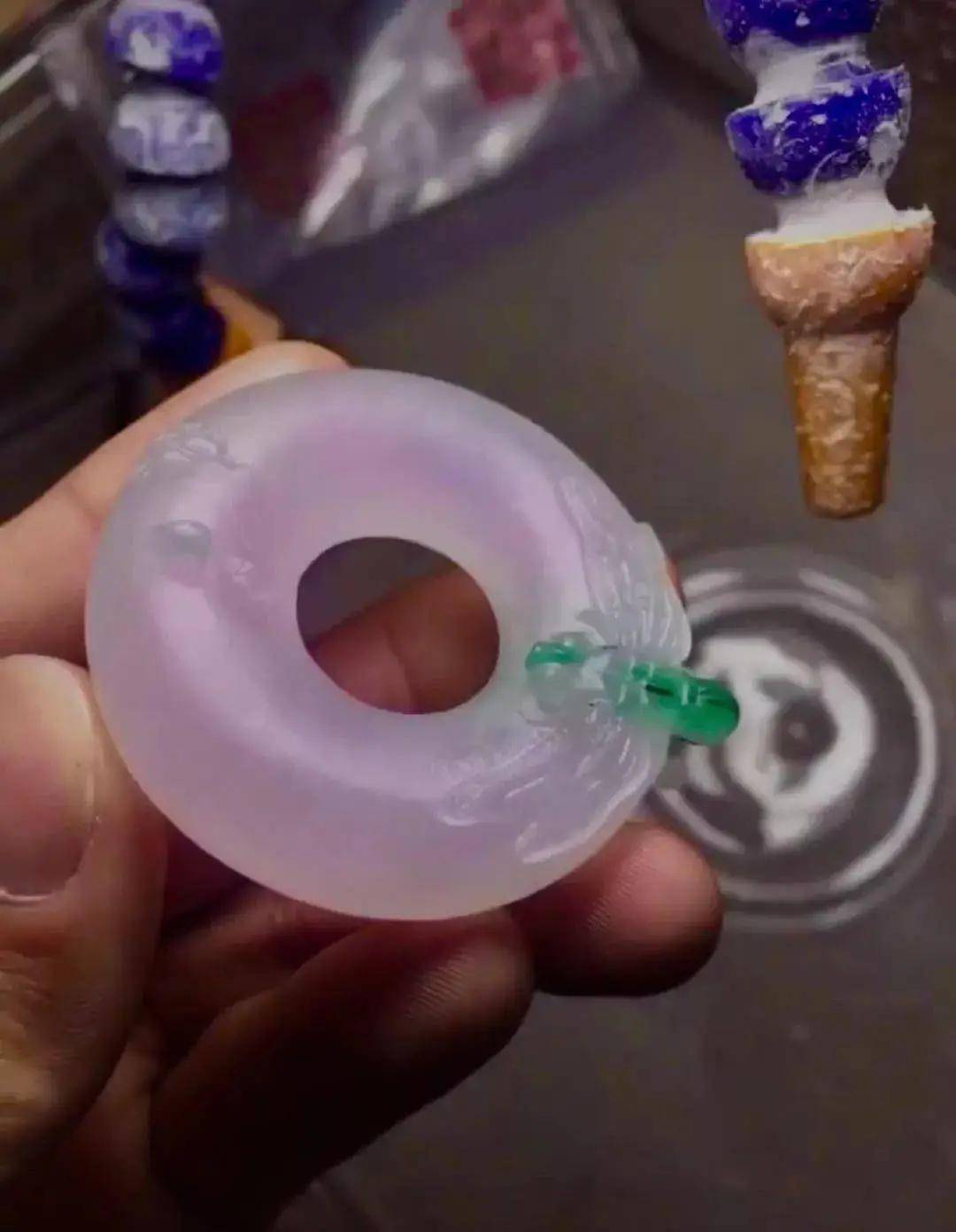 這是客戶剛取完手鐲后剩下的鐲芯,肉質很細膩,