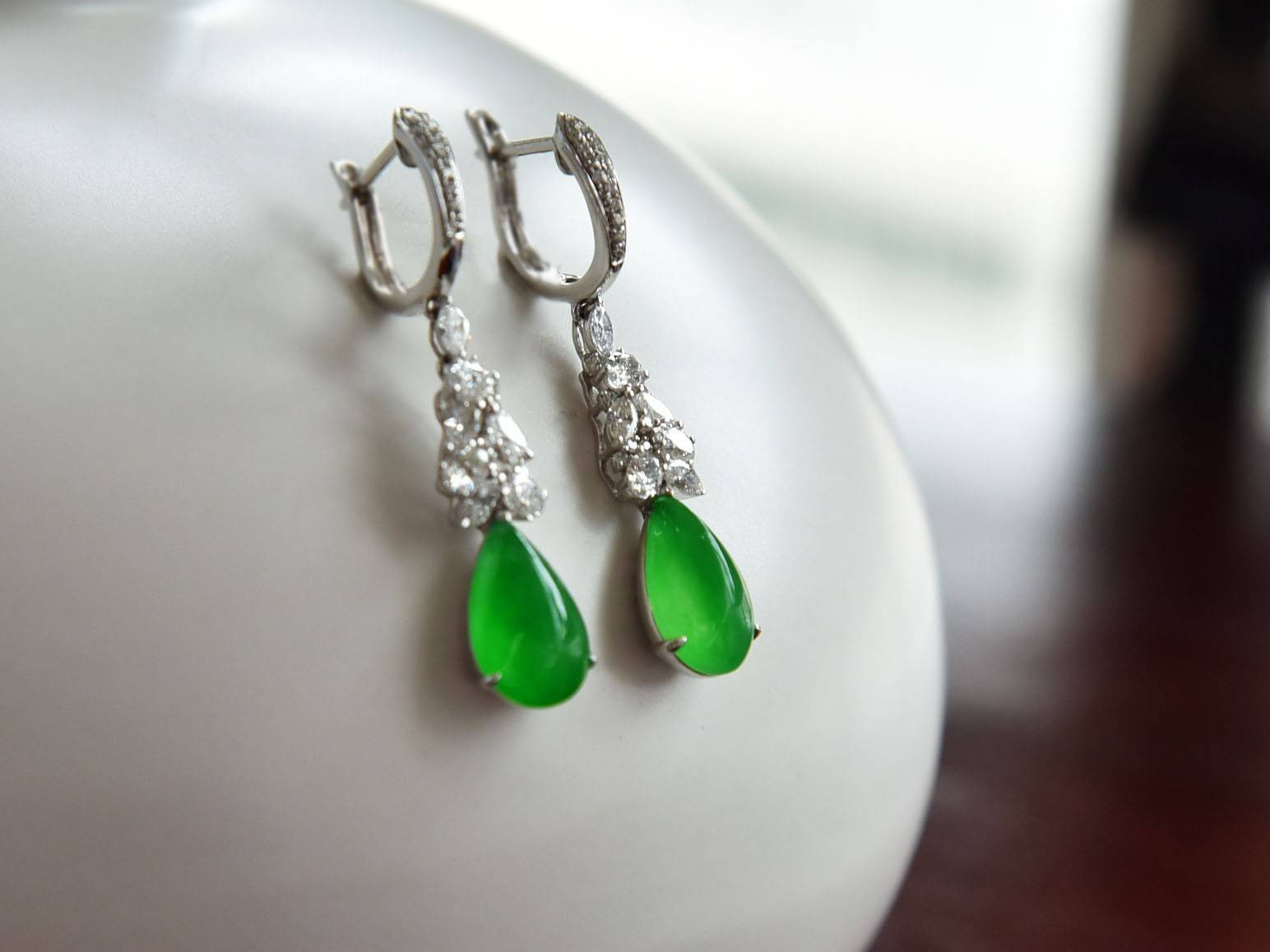 硬玉以翡翠為例,講究玻璃光澤,若是能起剛或起瑩(一種光學效應)則為上品。