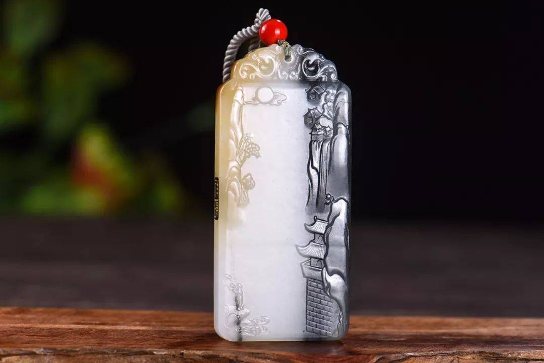青花的形成是白玉或青玉受礦物石墨沁染形成的,墨玉也是如此,根據行業標準:一般以黑色部分含量在30%以上可以稱為墨玉,30以下稱為青花玉。