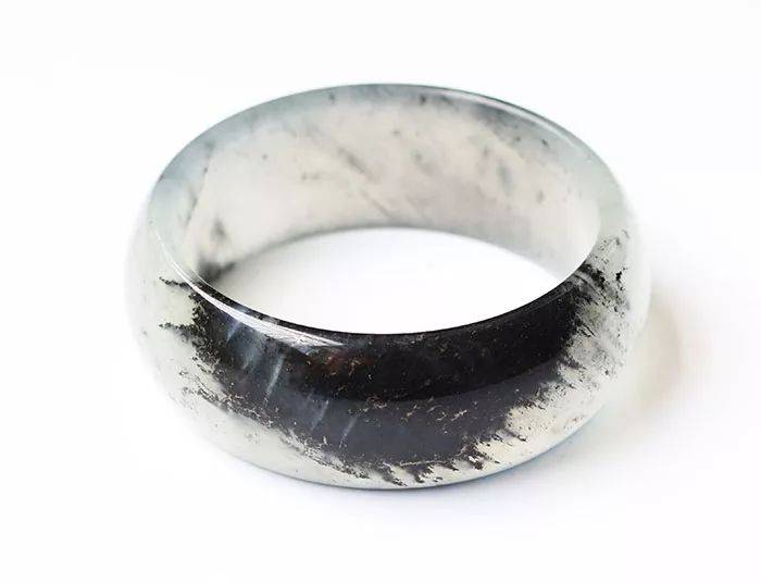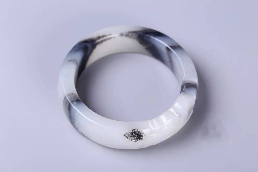 岫玉中的青花也就是火石星料! 火石星料的基本特徵是整體白色透明,中間藏有黑色棉狀。 做鐲子很漂亮,因花色獨特,猶如中國的水墨畫一般,故又稱水墨玉。