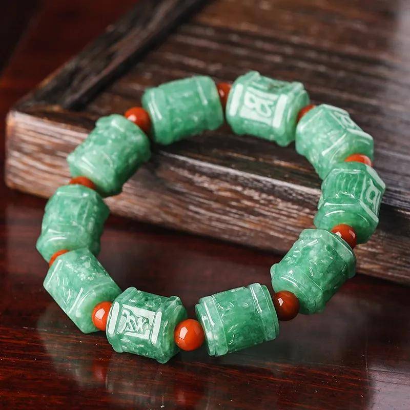天然的翡翠玉石中,含有对人体有益的多种微量元素,由于翡翠手串是直接和皮肤接触的,所以,玉石中的矿物质可能会被人体吸收,这对人体来说,也就达到了一定的养生效果。