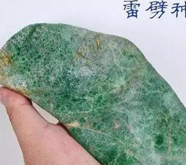 雷劈種,顧名思義,就像被雷劈過一樣,上面分佈著大大小小的裂紋,但是一般情況下,雷劈種的顏色都還算不錯,製作一些小佩戴還是有市場的,價格不高,算是低價翡翠的一種。
