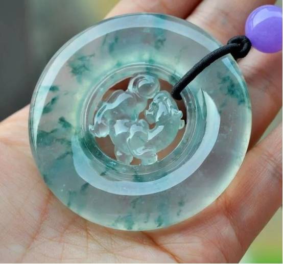 翡翠內部有漂浮的藍花,呈脈狀、絲狀、草狀分佈在翡翠中,飄藍花的價值主要看飄花的色彩鮮豔程度,花型是否好看,花型大小疏密是否合適,花與底子的相互關係,種水的好壞程度等,最重要的是飄藍花有靈動感,它不僅使整個翡翠充滿活力,靈動、而且提高了整個翡翠的價值。