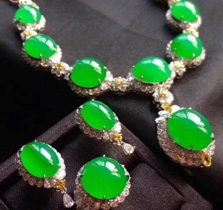 一說到翡翠的價格,很多朋友會想到一句話,「紅翡綠翠紫為貴」。。 很多人都覺得滿色的翡翠貴,所以滿色的翡翠一定有升值空間。 但實際上,滿色的翡翠不一定都會升值。 就以滿綠的翡翠為例,像圖中這樣的陽綠色滿綠豆子自然會升值,但升值空間會很大嗎? 不一定,因為它薄,別看它是鑲嵌的,但從它底部的光感就看得出來,它是全封底的,並且是屬於相對薄一點的滿綠翡翠。 但它勝在綠得比較陽,所以它會升值,但不會翻三四倍那樣的升值。