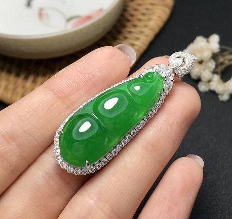 而且從款式來說,蛋面的價格彈性更大。 因為它可以戒指,也可以做吊墜,還可以做耳墜。 而像上面那個豆子,基本就只能做吊墜,款式已經被限制了。 所以,滿色翡翠要有升值空間,不僅要色滿,還得色好種好,還得厚度相對而言也夠。 如果是薄得像一層紙一樣的,即使是滿陽綠,你說能拿來做什麼?