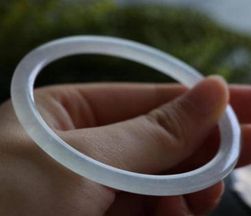 第三種:翡翠平安鐲,翡翠平安鐲也叫扁口鐲,它的造型是內圈圓,外圈圓,條桿從弓形到半圓不等,在翡翠市場中平安鐲是最常見的手鐲款式了,一般來說人人都可以佩戴。