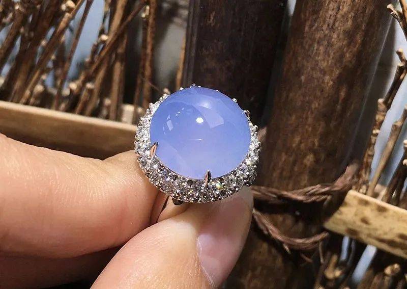 藍水翡翠具有均勻的,淡淡的藍色。 但藍水並不單純指代顏色,同時也要種地尚老、細膩、水頭好透度高,再配上顏色,才可以有這樣的稱呼。