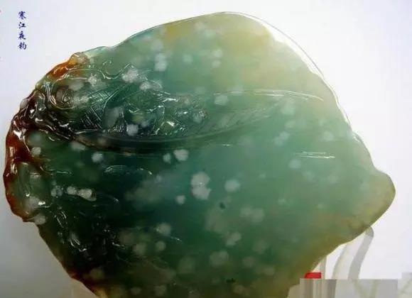 雪花棉要和極佳的種水相結合,才能顯出雪花的點點皆清瑩,粒粒如霜雪的美感,使明凈如水的底子增添如詩如畫的意境。 好的雪花棉不是飄在翡翠表層,而是隱入翠件內部,透光很明顯,佩戴起來卻又若隱若現,棉點最好較細小,分佈要均勻,顯得輕盈秀氣,數量要適中,過多則失去靈氣,過少又失了漫天飛揚的氛圍。