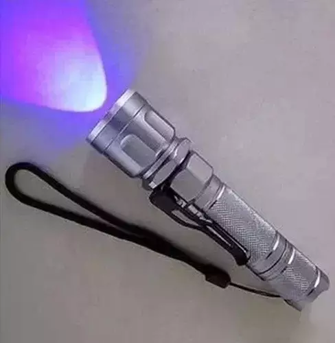 天然的紫色翡翠,在紫外線螢光燈的照射下一般沒有螢光反應,而被染色紫羅蘭翡翠在紫外燈光下,常有較明顯的螢光。