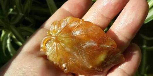 因為外皮是黃色的,所以葉子盡量做的滄桑一些,才會與晶瑩剔透的蟬色形成鮮明的對比。