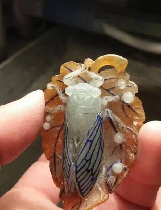 如若好好的設計雕琢一番必定是一件精品,根據料子雕刻師打算做一件“蟬”,把黃色部分做成葉子,其它正好做一隻翠綠色的蟬寓意“一夜成名”或者“一鳴驚人”,具體哪個好聽看您順口吧。
