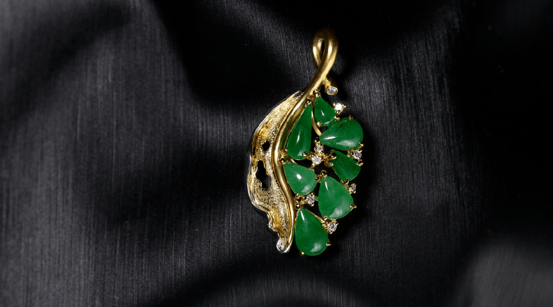 價值的提升,大家都知道翡翠鑲嵌的材料一般都是用18K玫瑰金或者铂金來鑲嵌,而在搭配上除了翡翠外也會有一些比較特別的鑲嵌會用到彩色寶石,或者其他顏色的翡翠來做搭配。