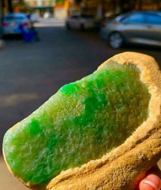 皮殼的形成,是翡翠原石在漫長的地質年代中,經歷風化、氧化與流水搬運的結果。不同的地質環境造就了不同類型的皮殼,而這些皮殼的特徵,直接映射了內部玉肉的品質。在眾多皮殼中,「白鹽沙皮」被視為上品。這種皮殼的砂粒細小均勻,如同食鹽般緊密排列,手感順滑。擁有白鹽沙皮的翡翠原石,通常內部種質較老,肉質細膩,水頭充足,極易出產高品質的玻璃種或冰種翡翠。這是因為只有結構緻密的玉料,才能在長期的風化過程中抵抗侵蝕,保留下細膩的表層。