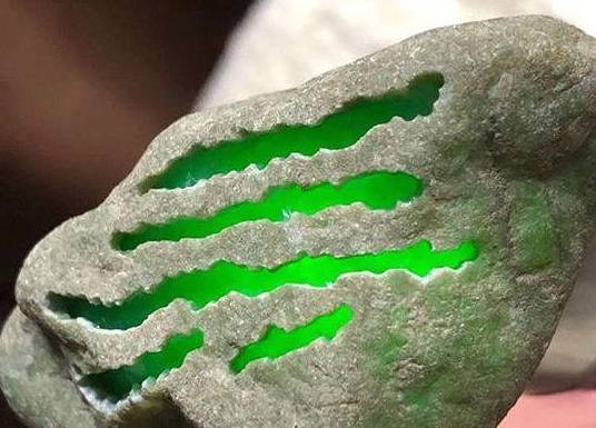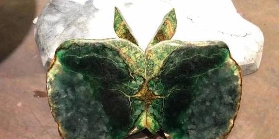 說實在的,如果只從外觀來看,真的很難發現翡翠奇石,小編找了很久才發現這麼一塊,可以和奇石搭上邊的翡翠。