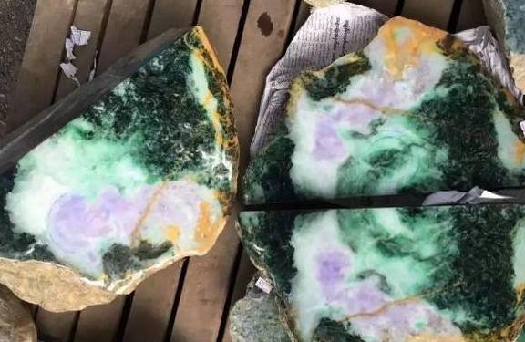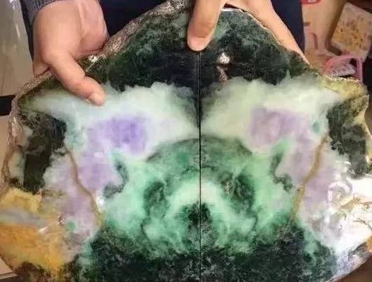 紫色、綠色都是很高貴的顏色,春帶彩的翡翠自然價格也要貴很多,這塊料再加上有國寶熊貓的圖案,估計給多少錢老闆都捨不得賣吧!