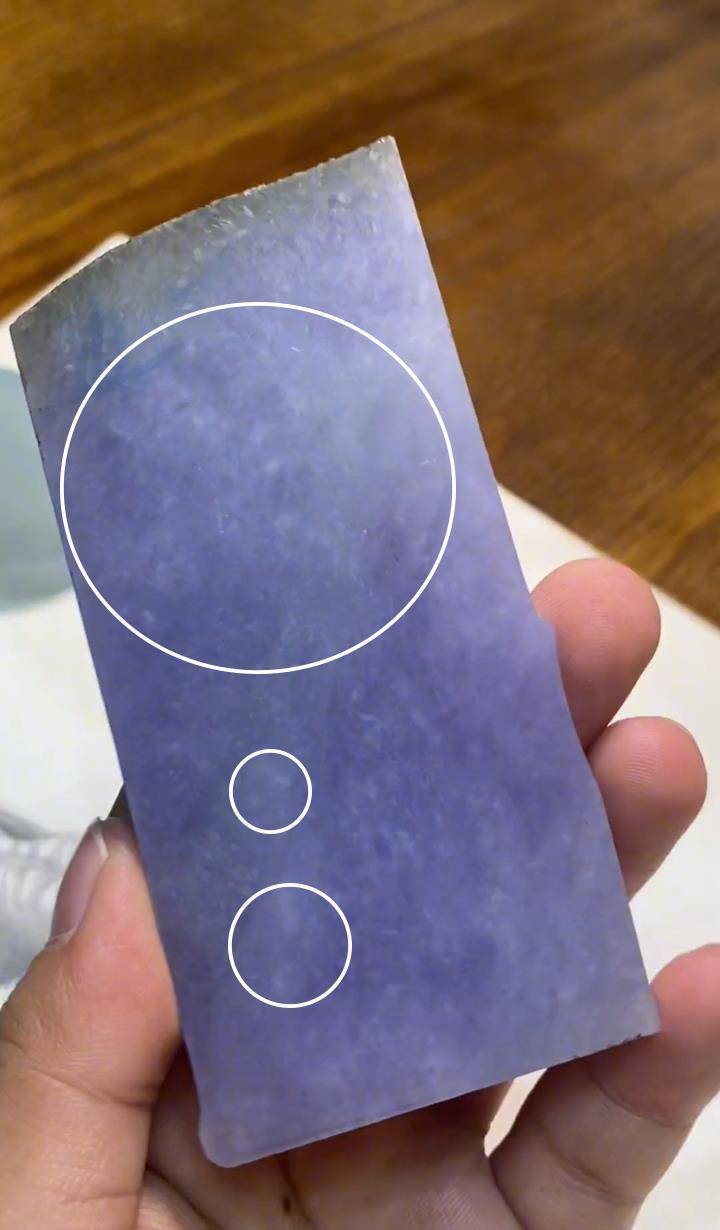料子本身最好看的就是這個紫色,但是紫色的底色有濃有淡,那就把最濃的紫色想辦法保留,並且把它的種水更好的體現出來。