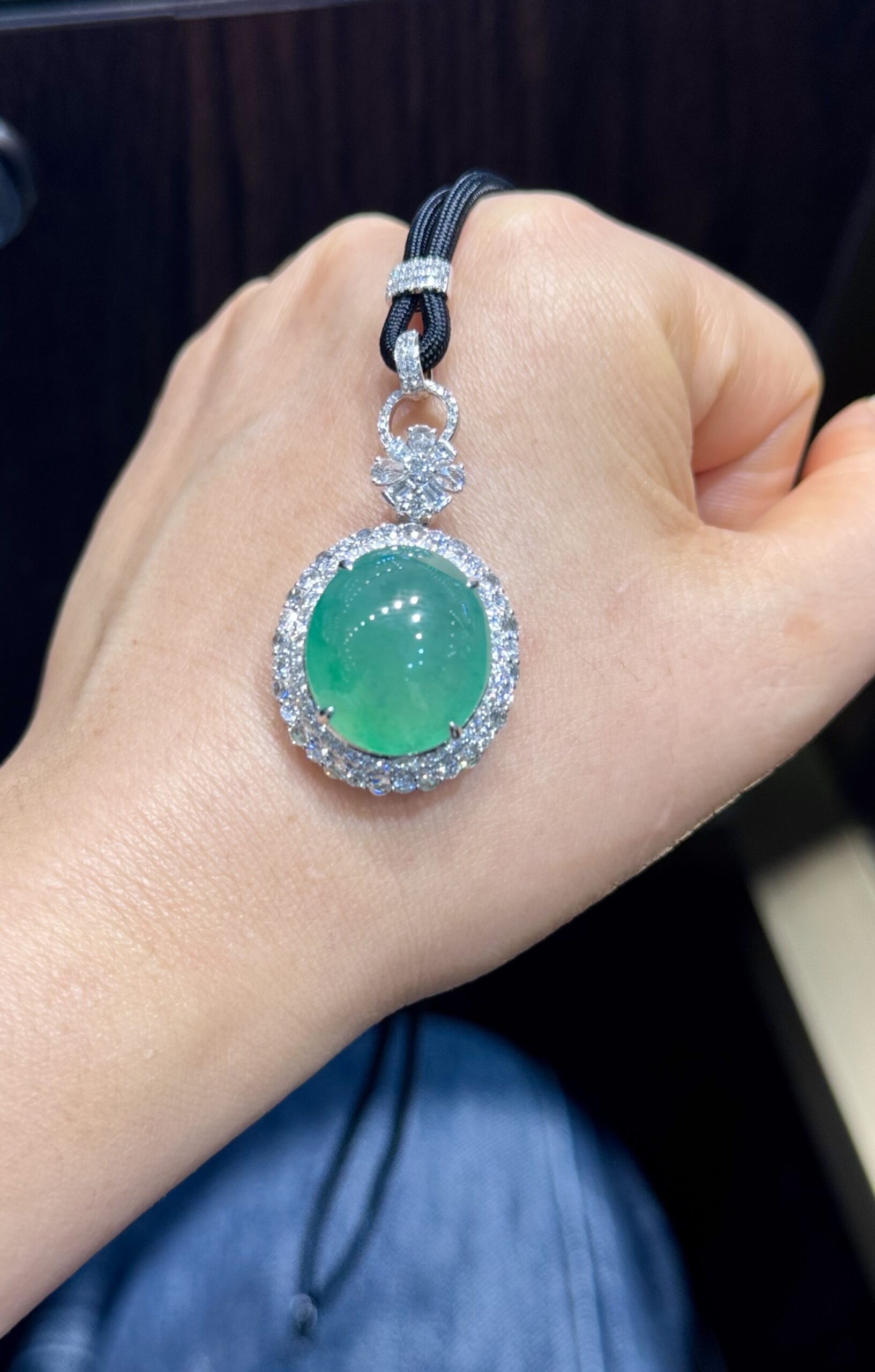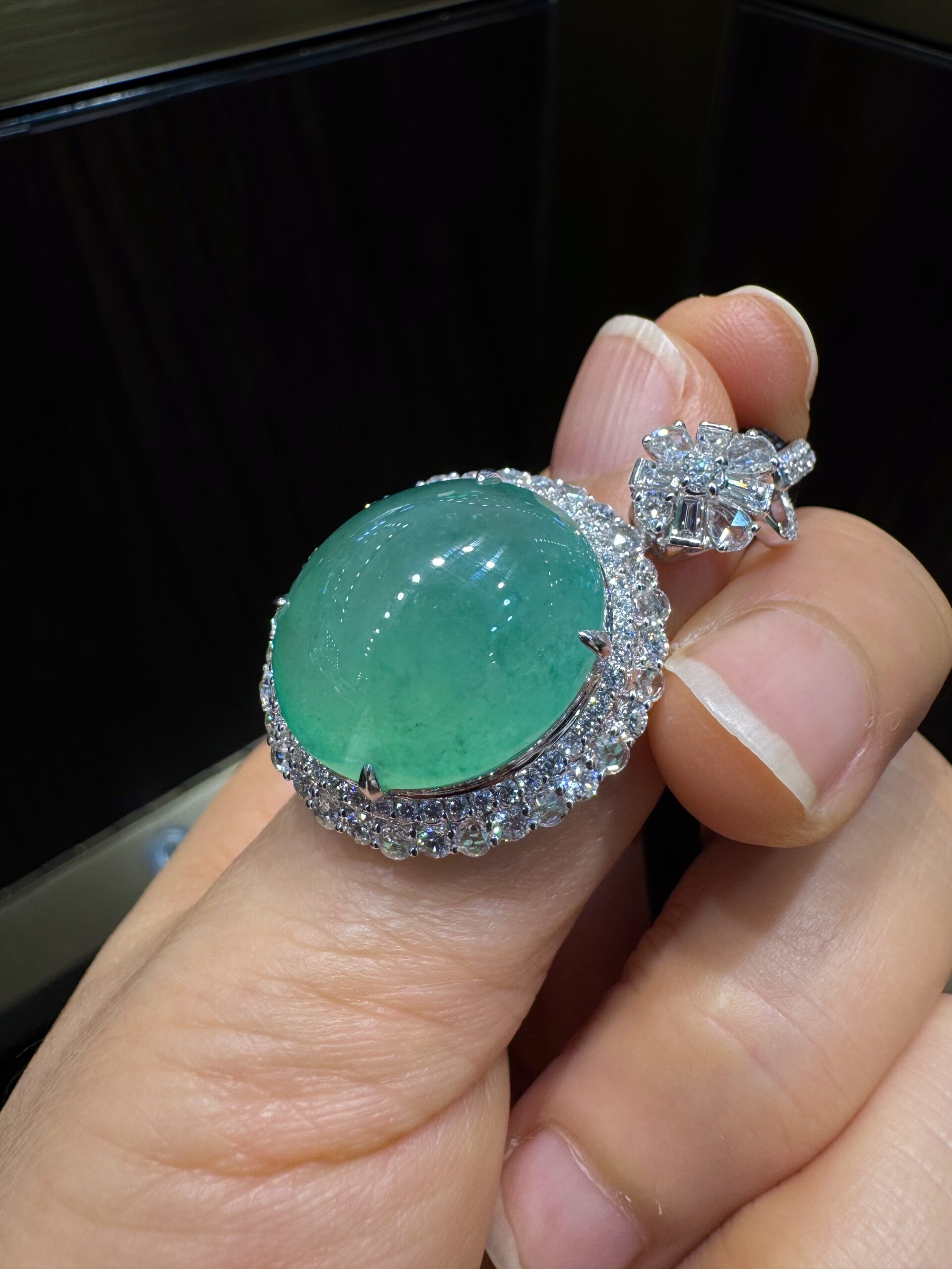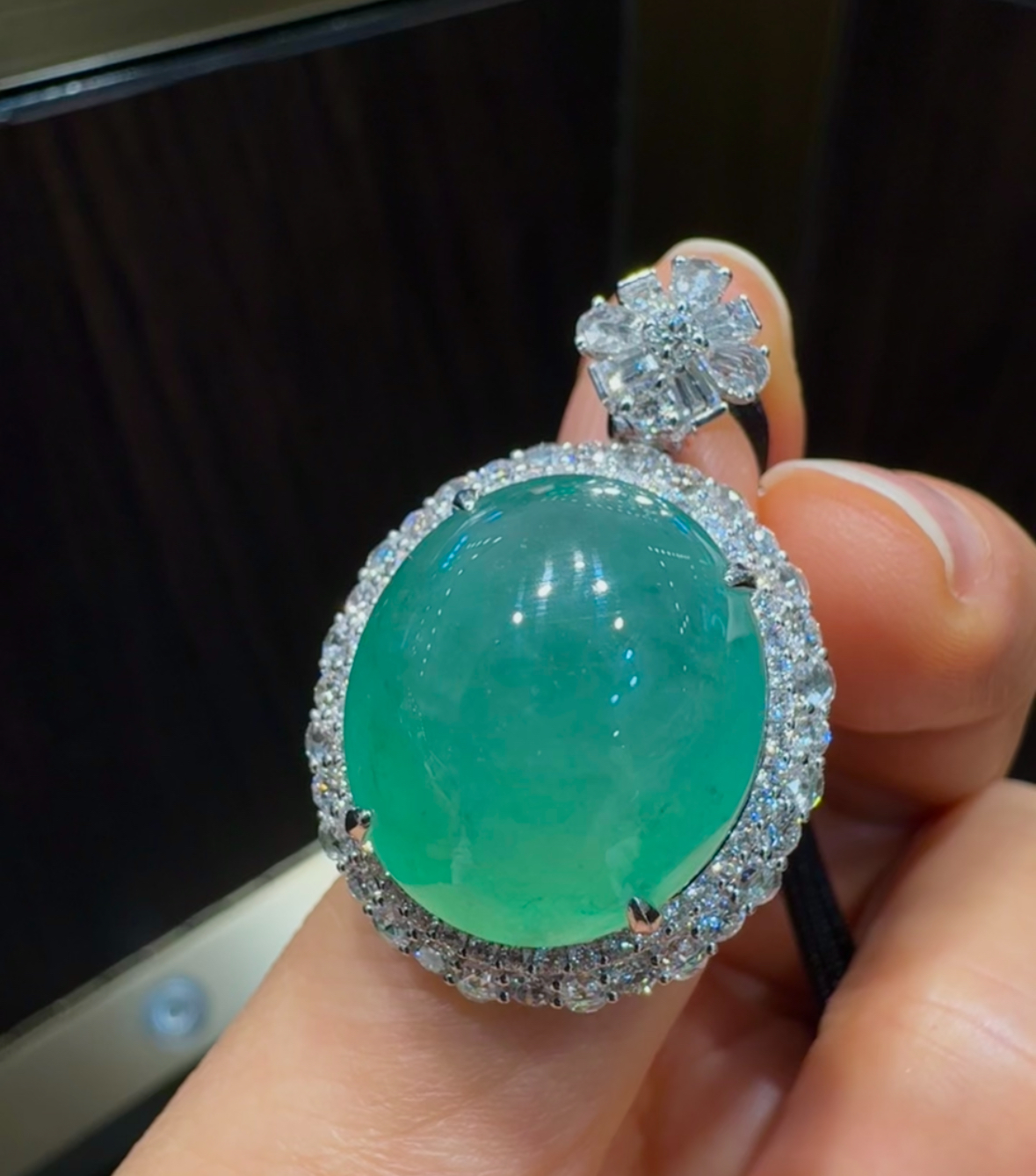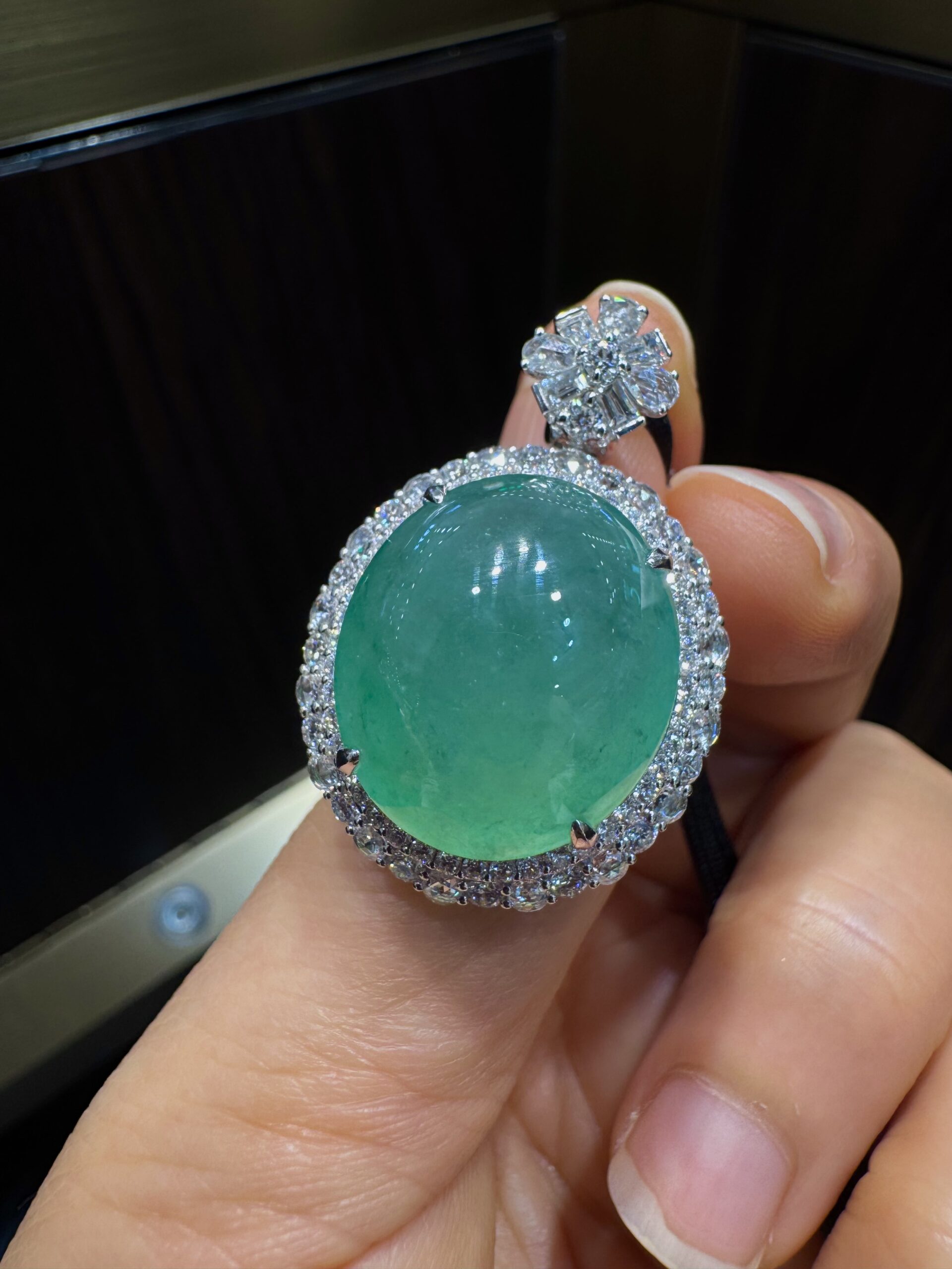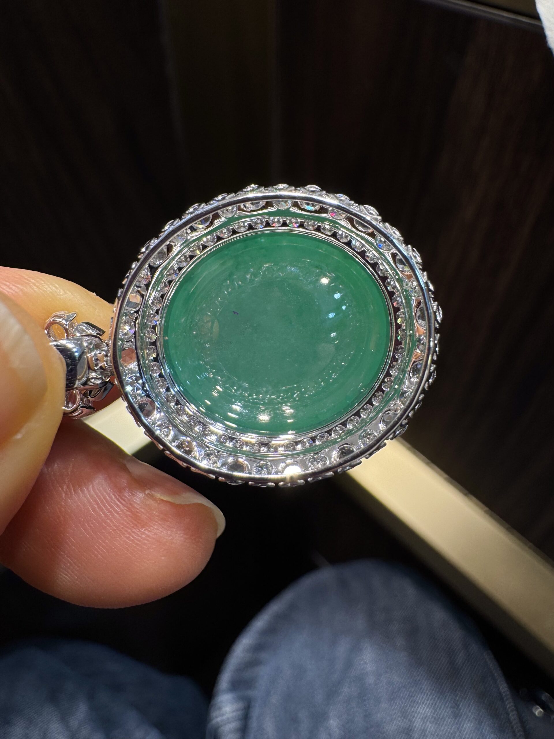 天然 A 货缅甸翡翠戒指 帝王绿高冰种蛋面 18K 金镶满钻