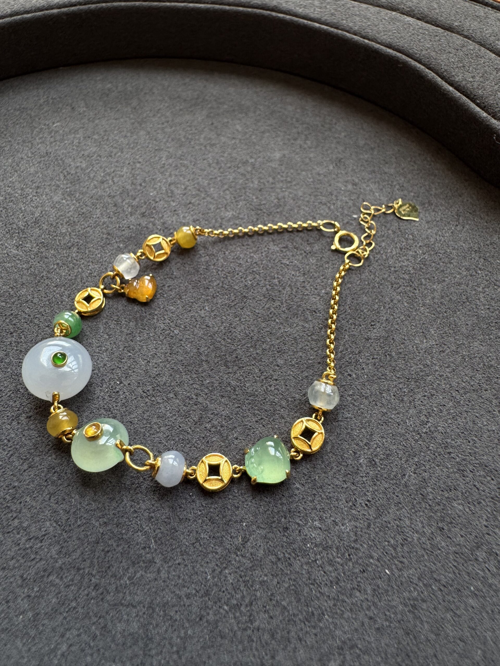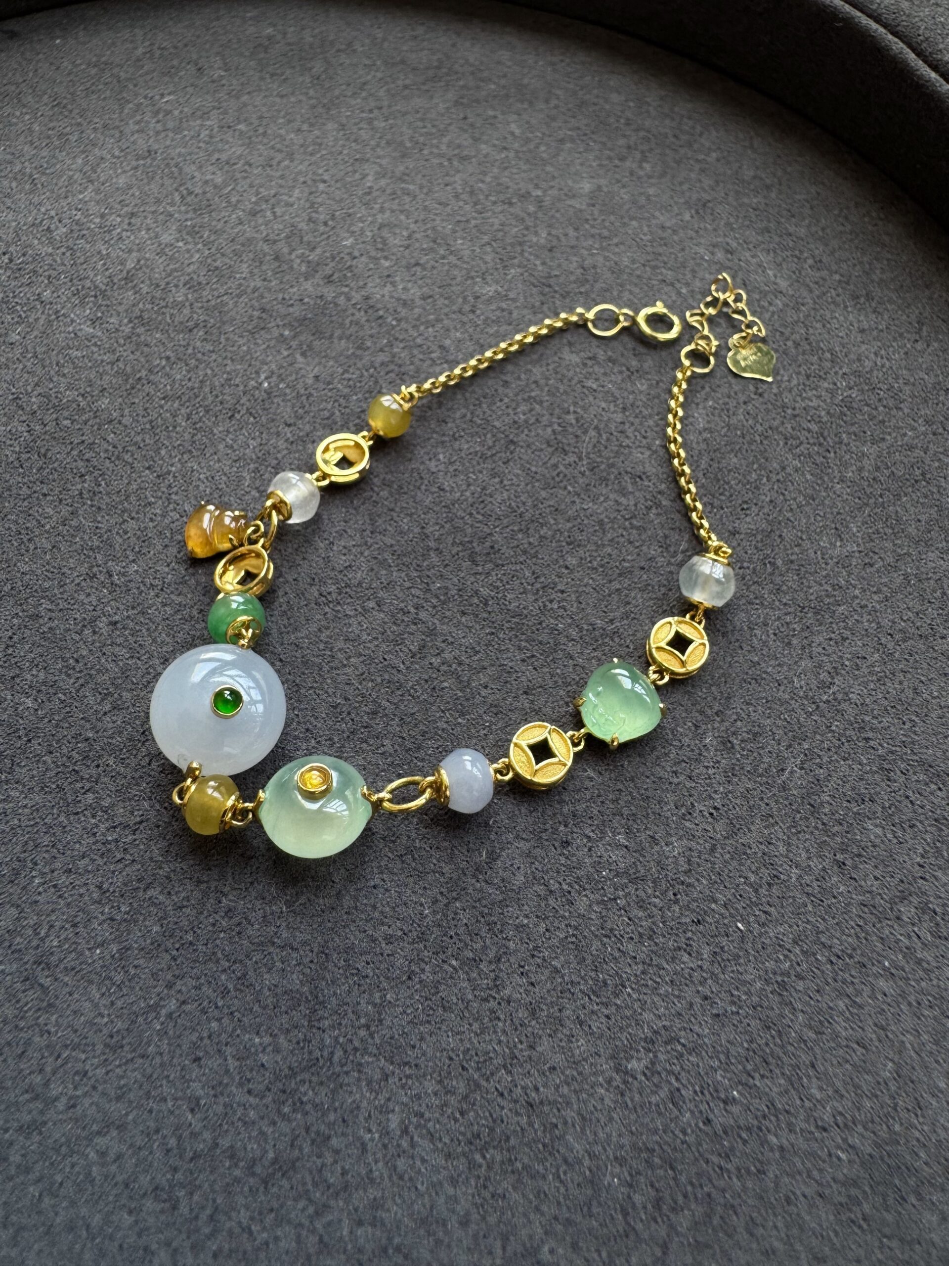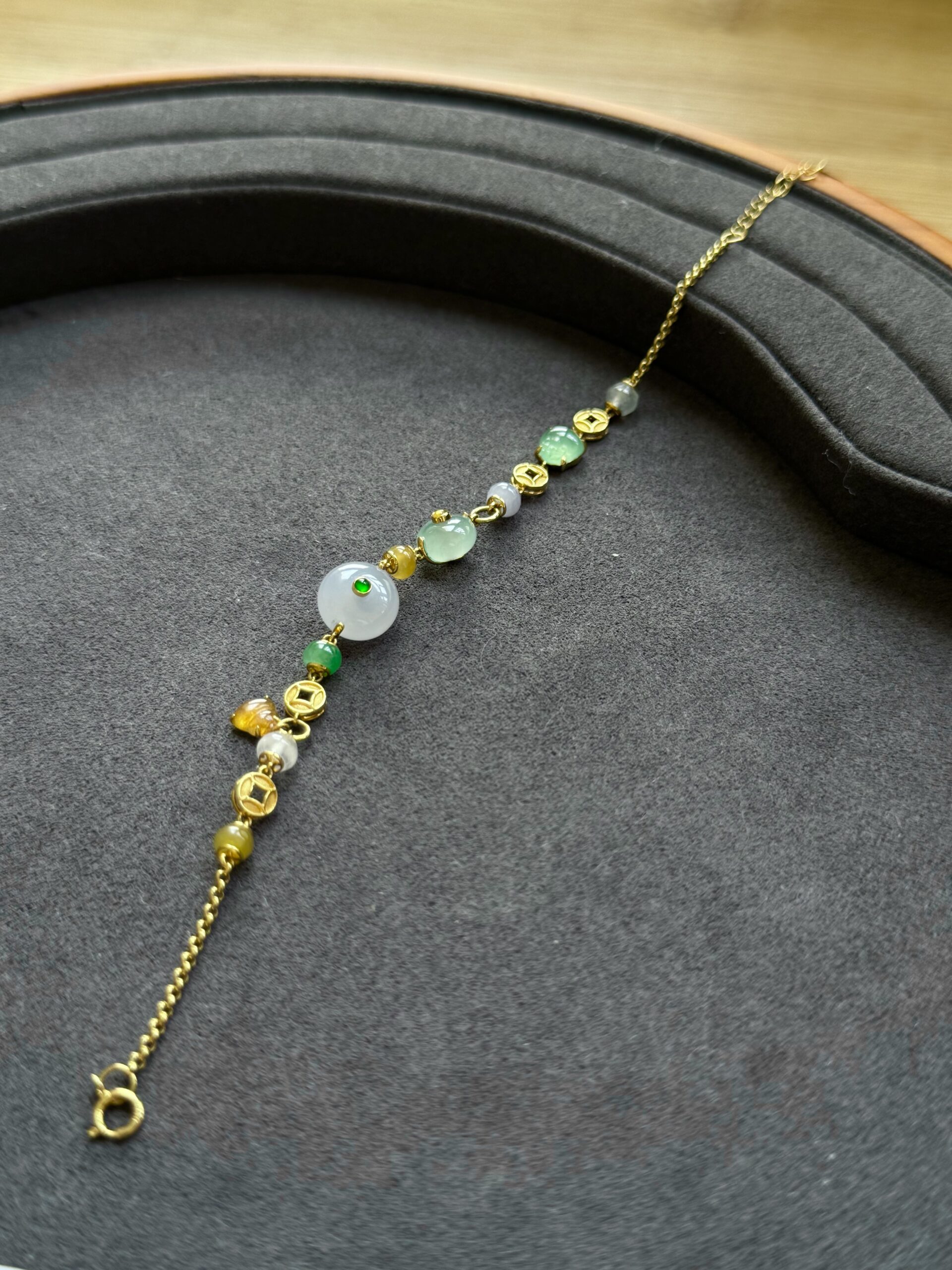 天然A貨緬甸翡翠手鏈 帝王綠高冰種福豆 18K金鑲滿鑽 奢華女款珠寶送禮收藏
