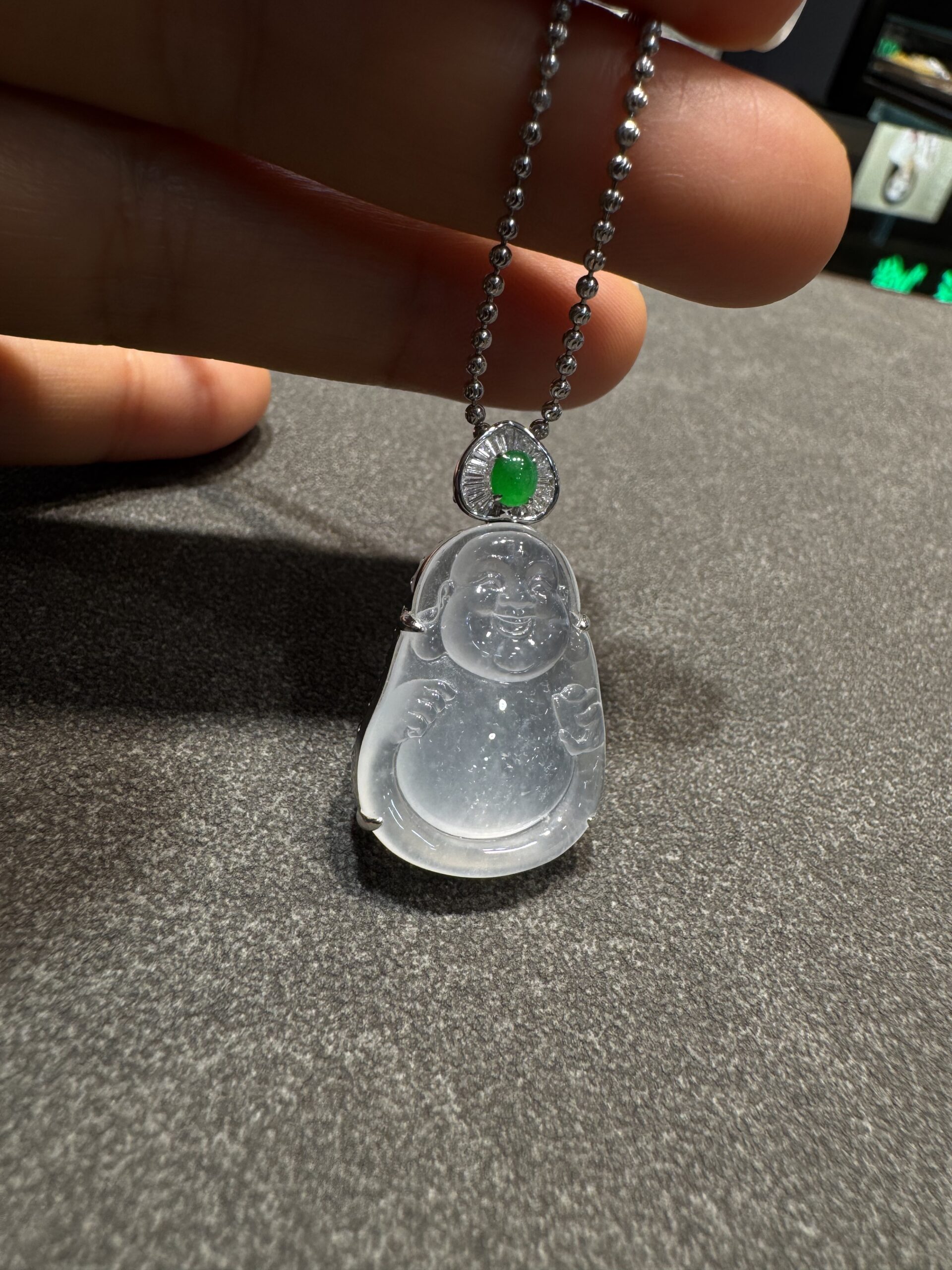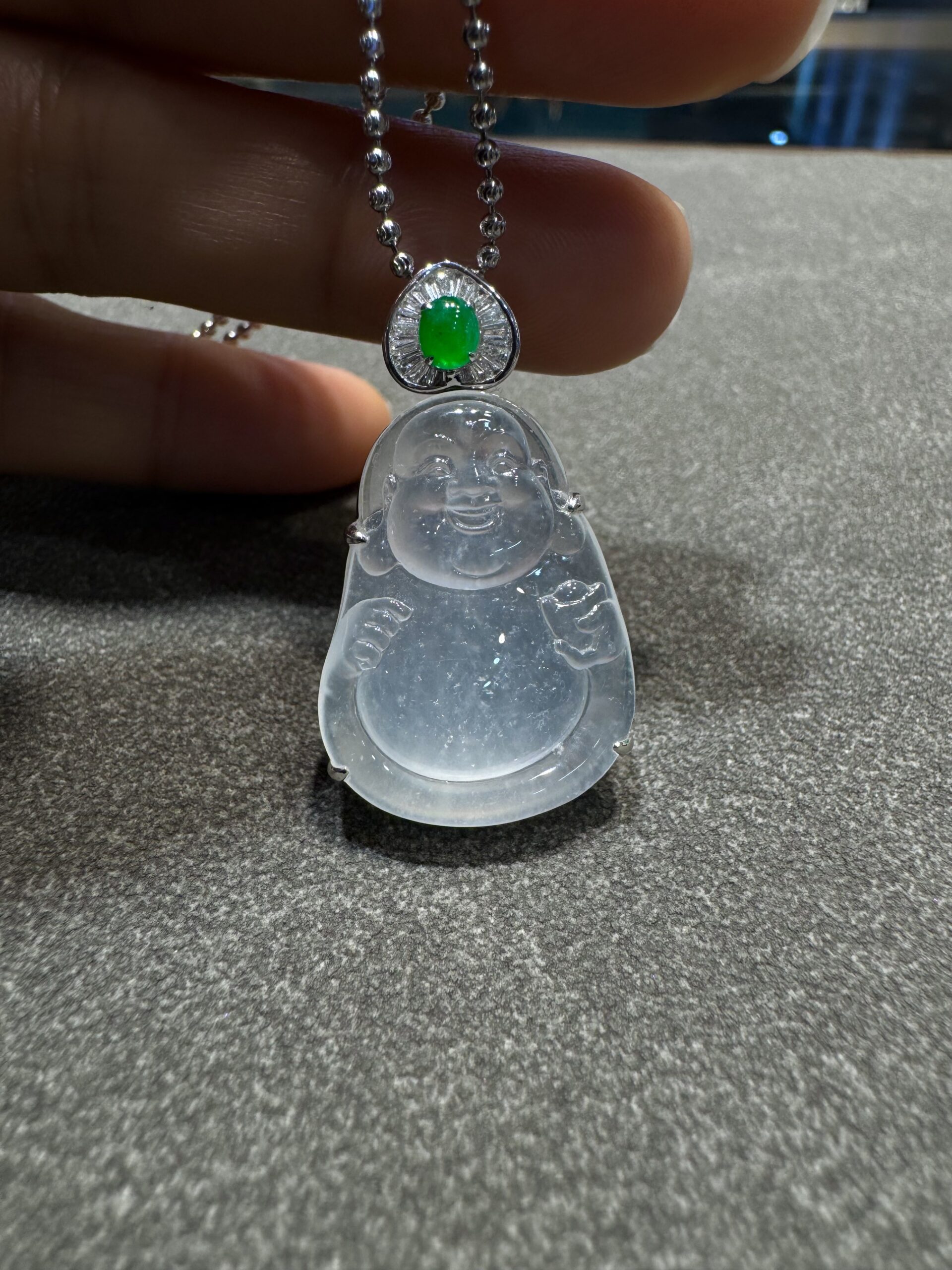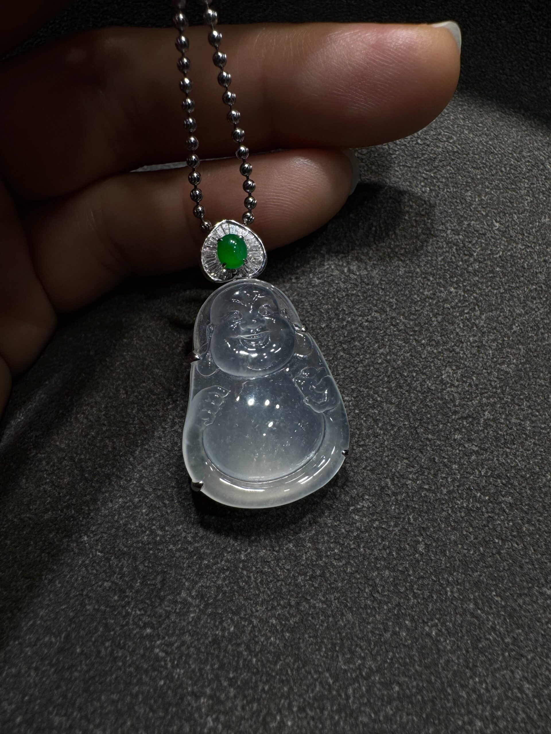 天然緬料老坑高冰翡翠布袋佛吊墜
