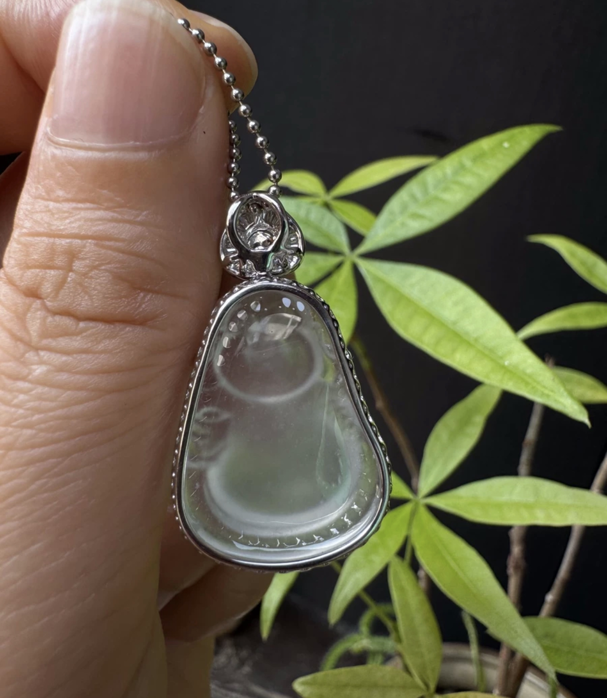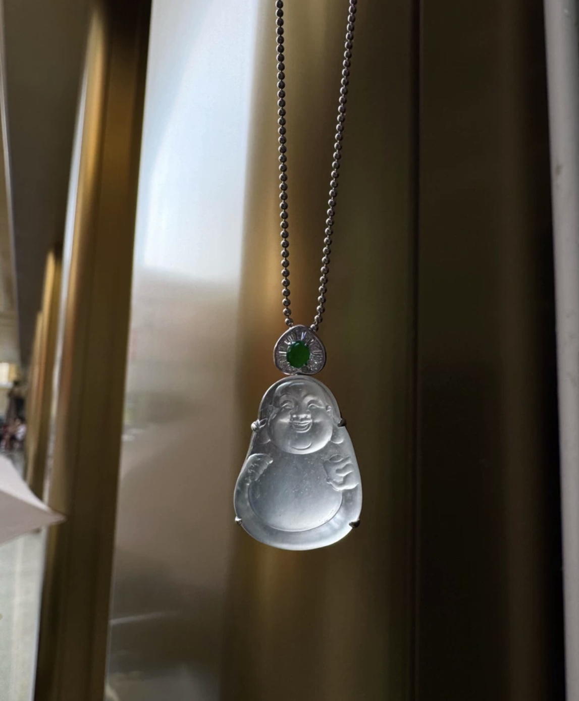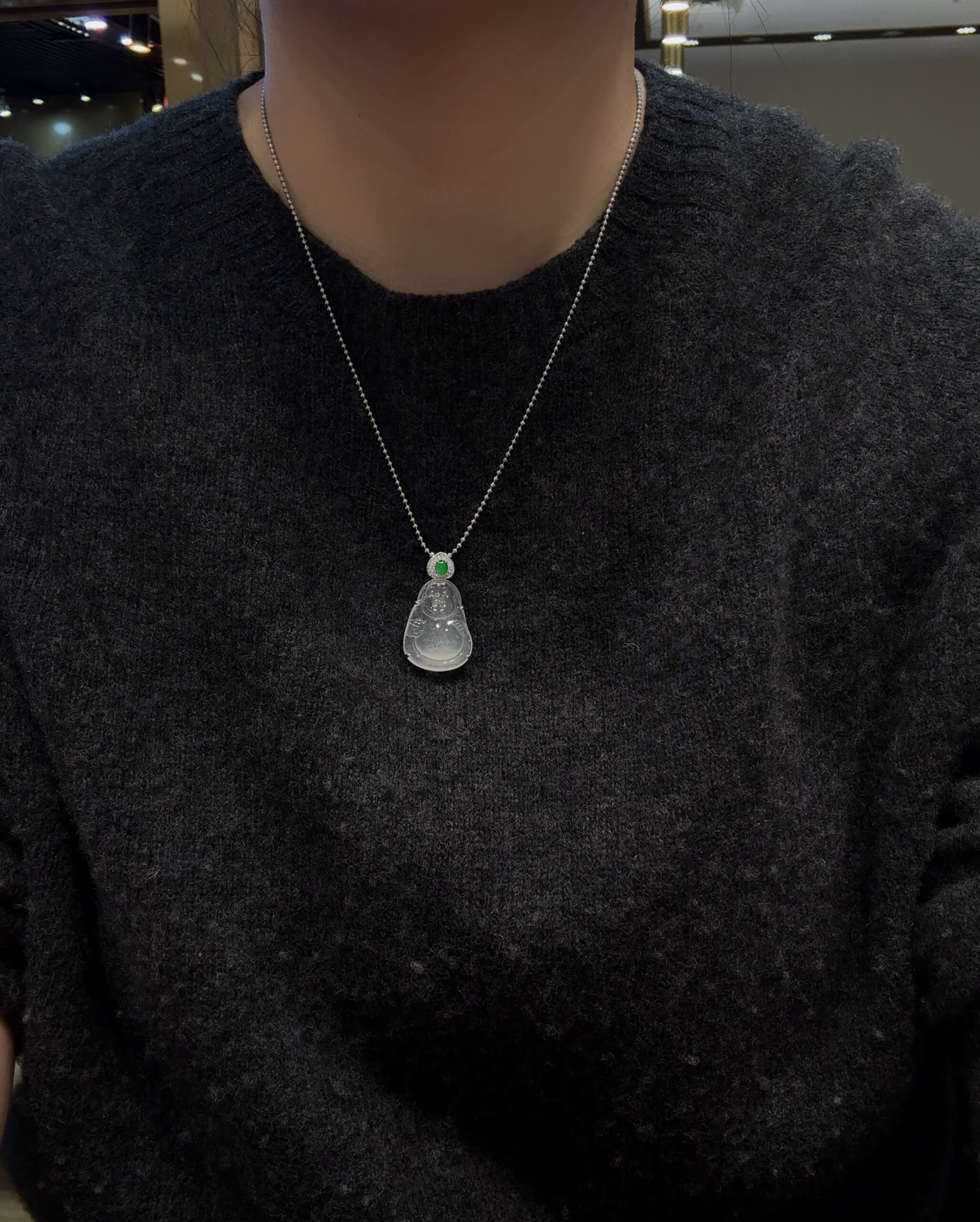天然緬料老坑高冰翡翠布袋佛吊墜