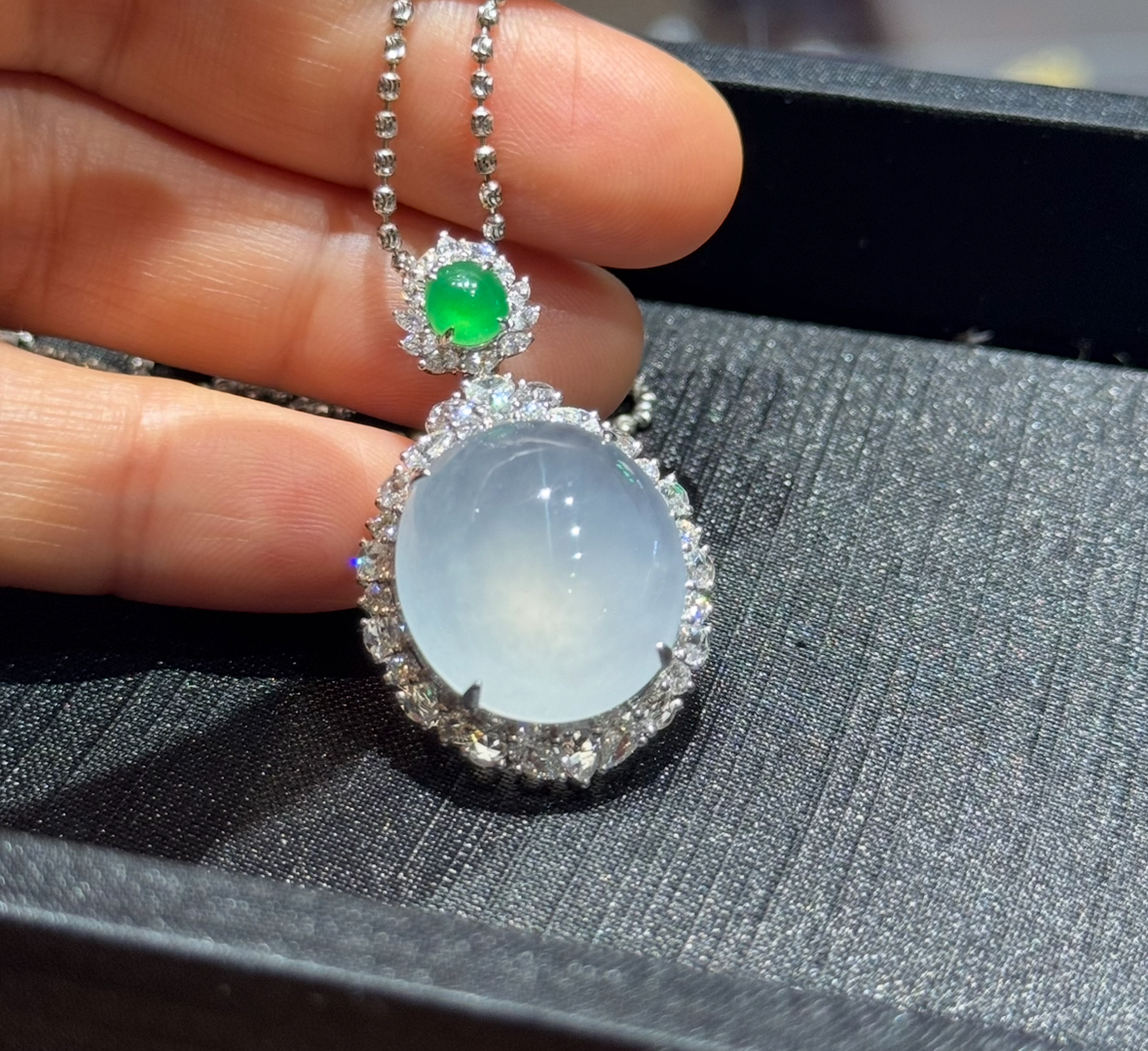 天然緬料高冰種翡翠大鸽子蛋面掛墜