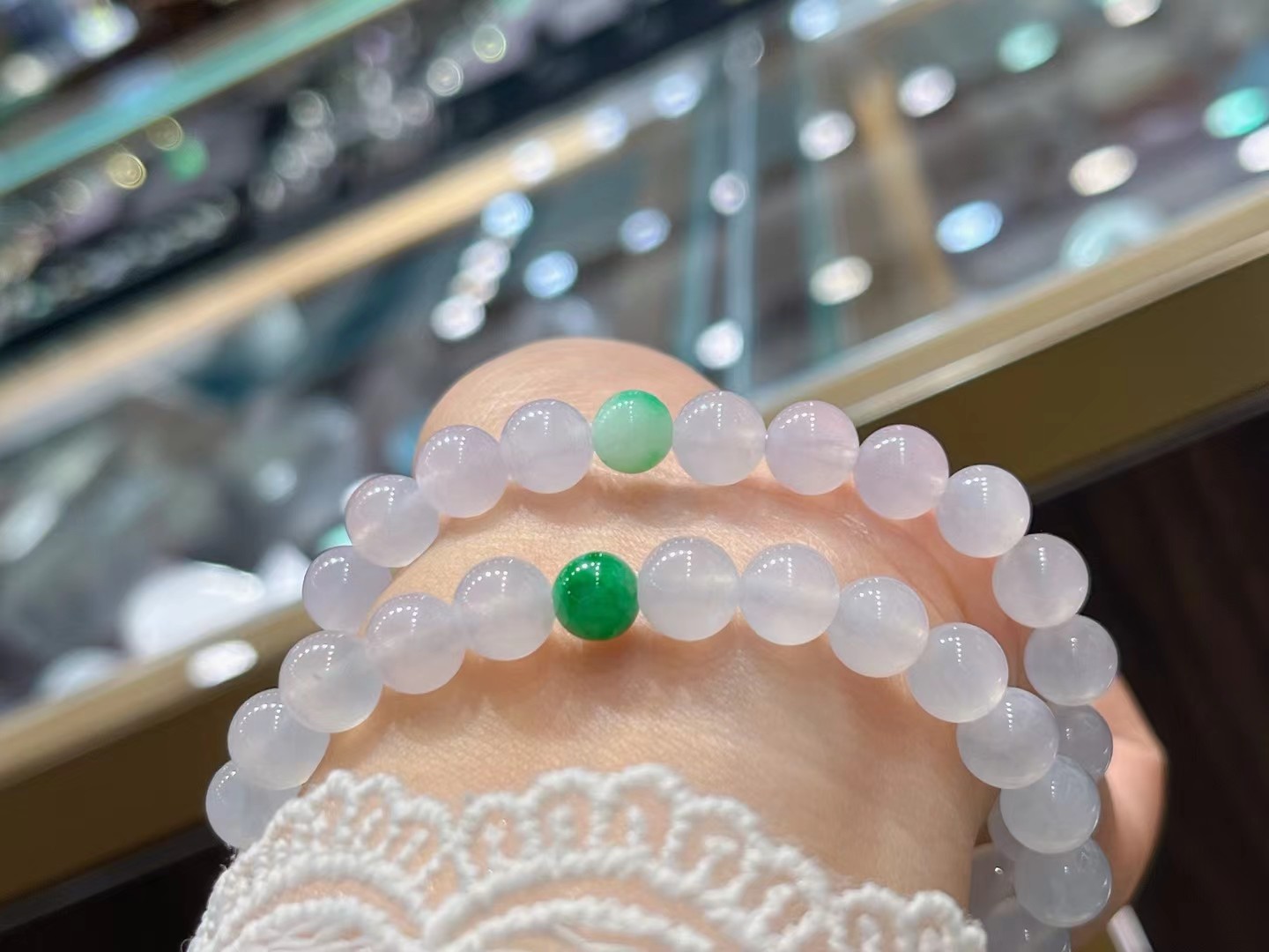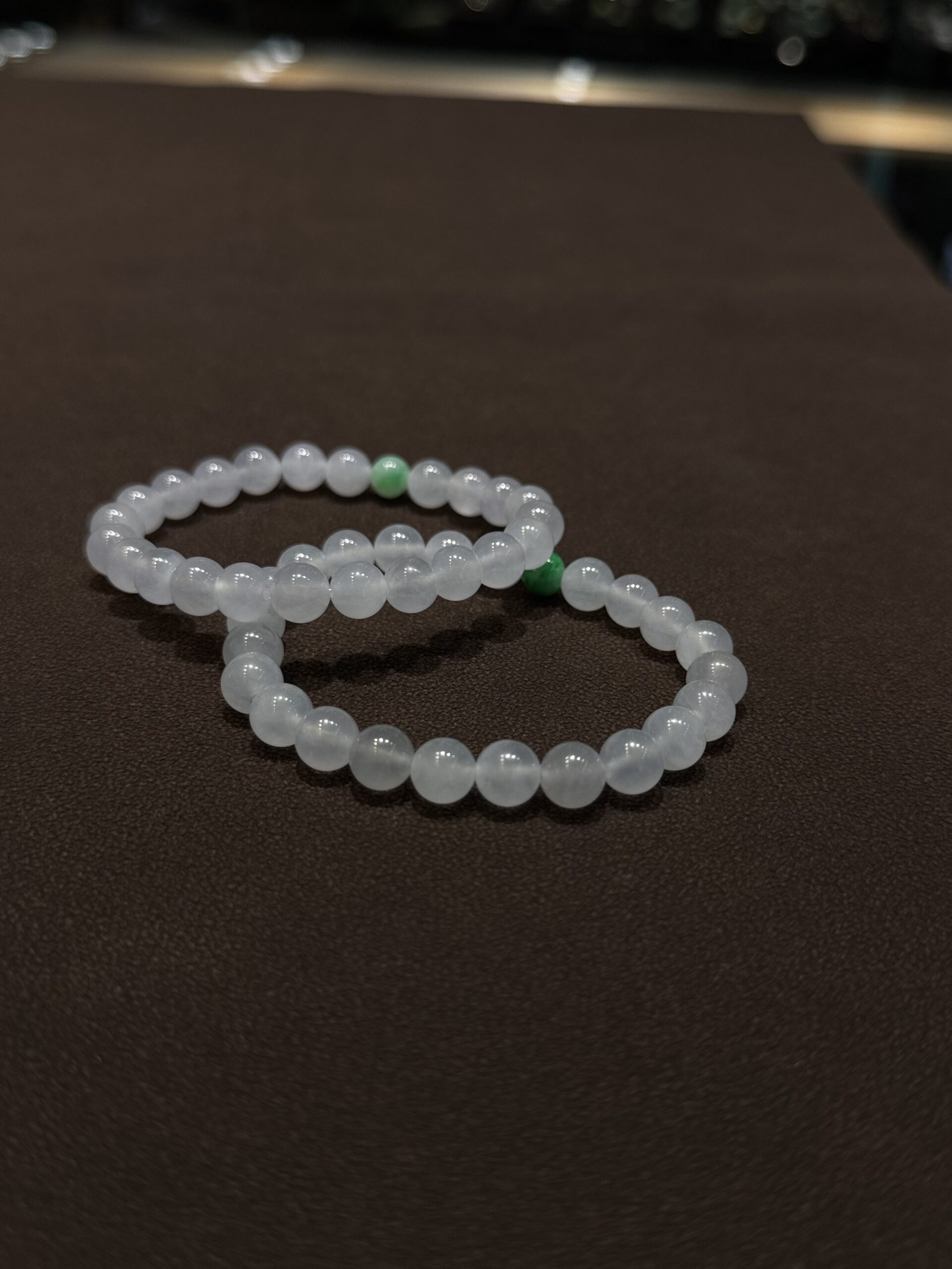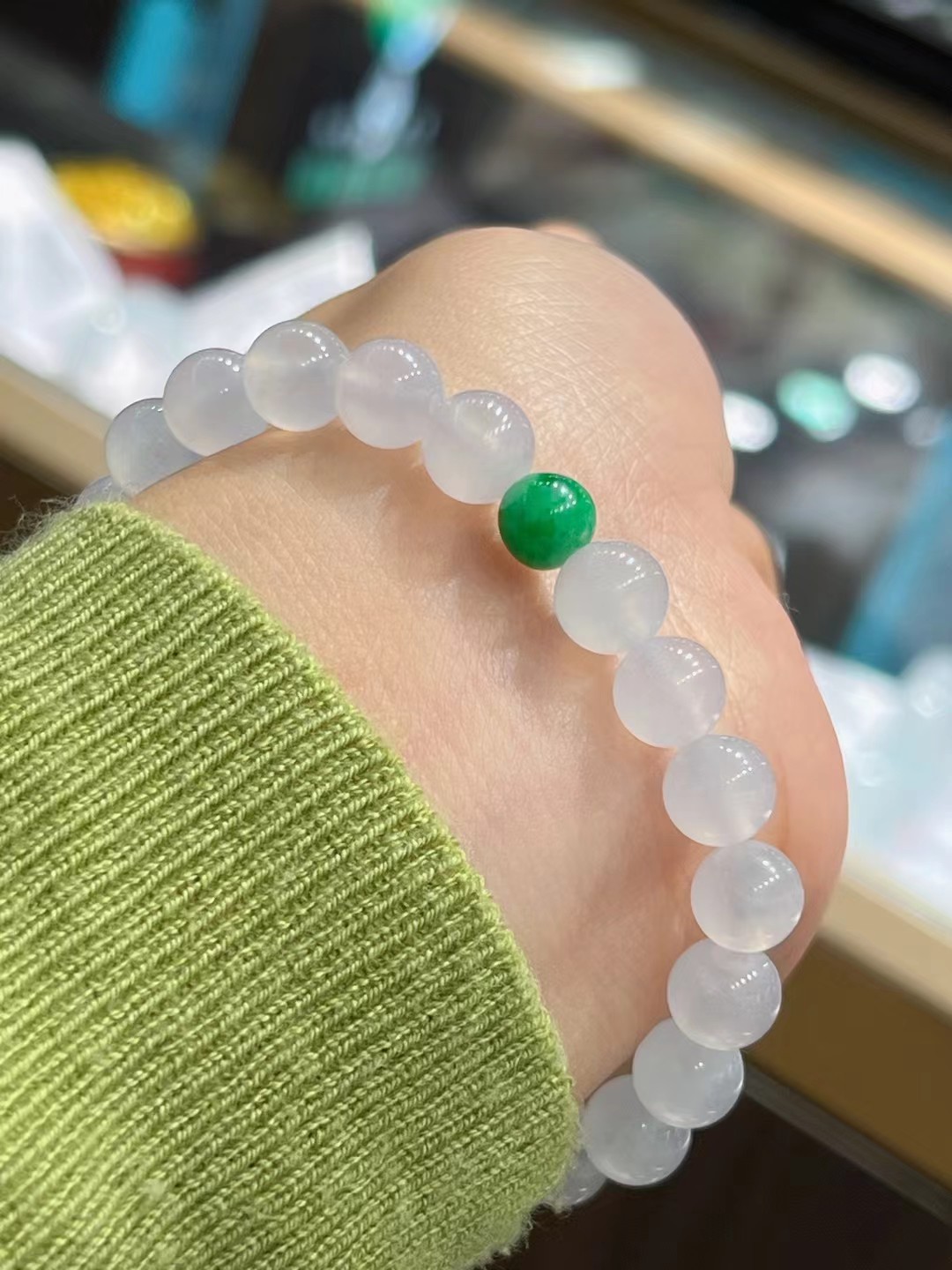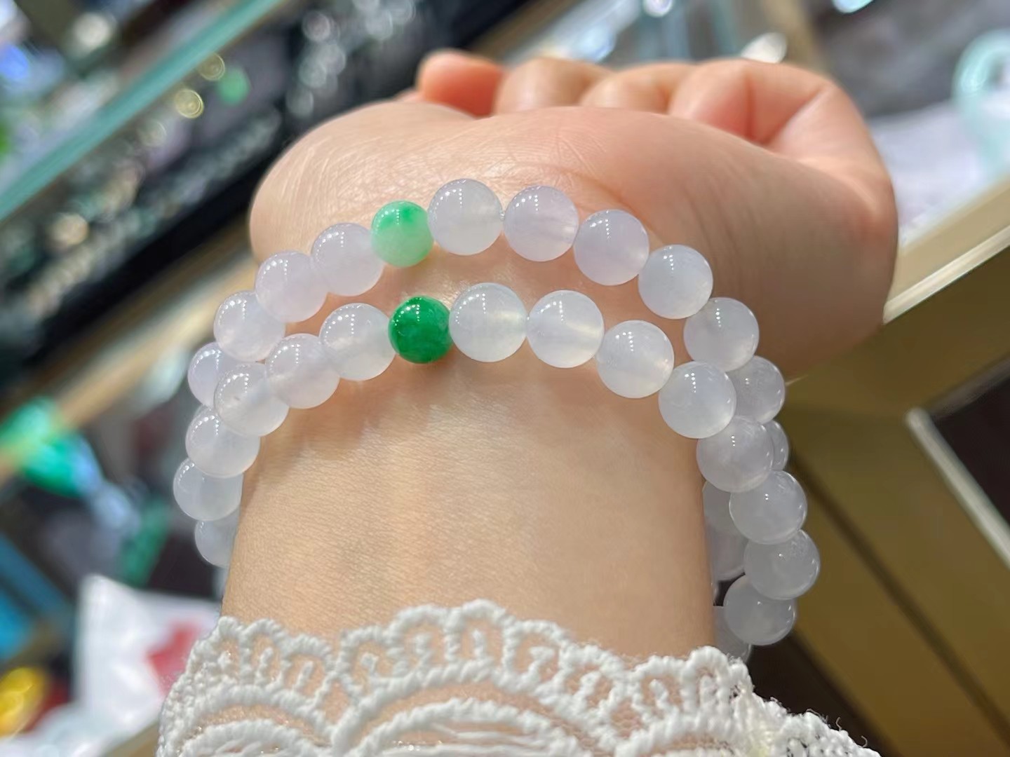 天然緬料高冰翡翠珠串,冰透起光,底子純淨無底色,上手顯手白,珠子直徑7.8-8mm,適合手圍16-18吋左右